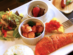 皿に盛りつけ、焼き汁が残っていたら上にかけ、あればレモンとパセリを飾りつけて、できあがり!