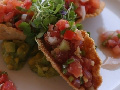 ズッキーニ(大1本)・パプリカ(80g)・鶏ミンチ(50g)・玉ねぎ(50g)・トマト(80g)・塩・こしょう(適量)・ガーリックパウダー(少々)・オリーブオイル(大4)・レモン・パセリ(少々)